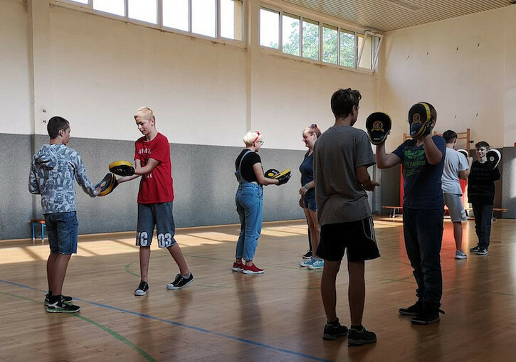 Ein besonderes Ereignis war, als wir 2007 ein Musiktreffen mit Schulen aus Baden-Württemberg und Sachsen hatten. Dabei haben die Schüler zusammen Kunst gemacht und ein großes Wandbild für unsere Schule gemalt. Das Thema war "Auf und Ab" und das Bild kann man jetzt an unserer Schule sehen.